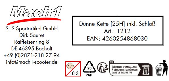Produktinformationen "25H Kette mit 75 Gliedern & Kettenschloss – für Mach1 E-Scooter & Pocket Bike"
