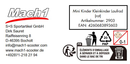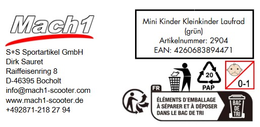 - 1 × Mach1 Kinderlaufrad (4-Rad Mini Lauflernrad)