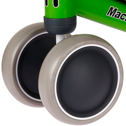 Durch den engen Radstand der Hinterräder können kleine Füße ungehindert laufen und das Fahrgefühl spielerisch erlernen. Die vier Reifen geben einen stabilen Stand mit Kippsicherheit – perfekt für die ersten Schritte auf dem Laufrad.