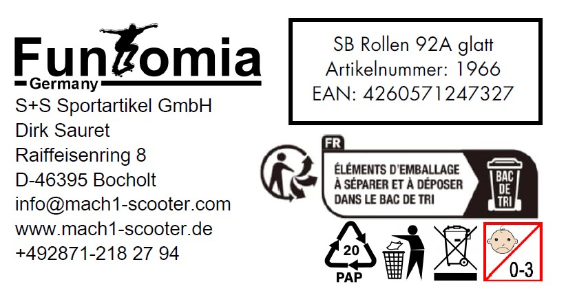 - Nur bestimmungsgemäß als Skateboard-Rollen verwenden.