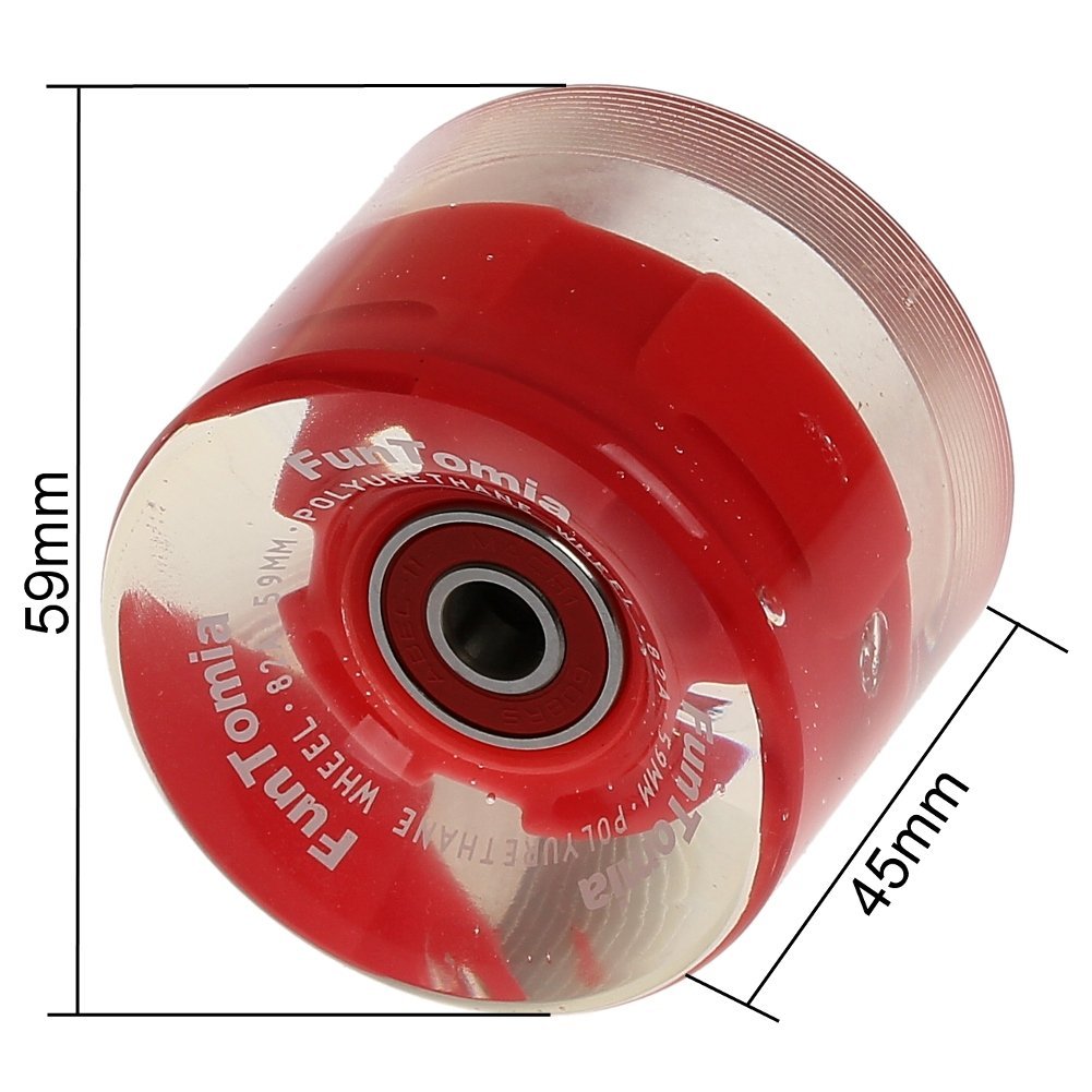 Produktinformationen "FunTomia LED Miniboard Rollen 59×45 mm – 4er Set 82A inkl. Mach1 ABEC-9 & Magnet-Spacer"
