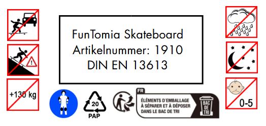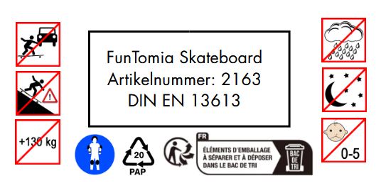 - Mindestalter: ab 6 Jahren. Nur bestimmungsgemäß als Skateboard verwenden.