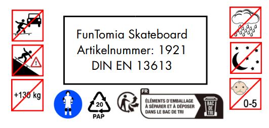 - Mindestalter: ab 6 Jahren. Nur bestimmungsgemäß als Skateboard verwenden.
