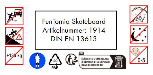 - Mindestalter: ab 6 Jahren. Nur bestimmungsgemäß als Skateboard verwenden.