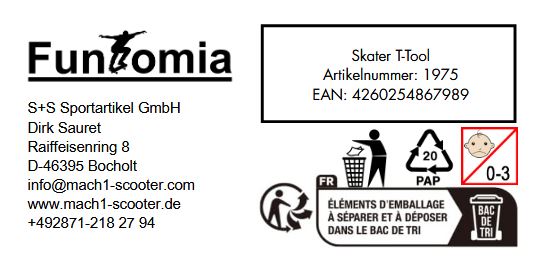 - Nur bestimmungsgemäß als Werkzeug für Skate-, Long- und Miniboards verwenden.