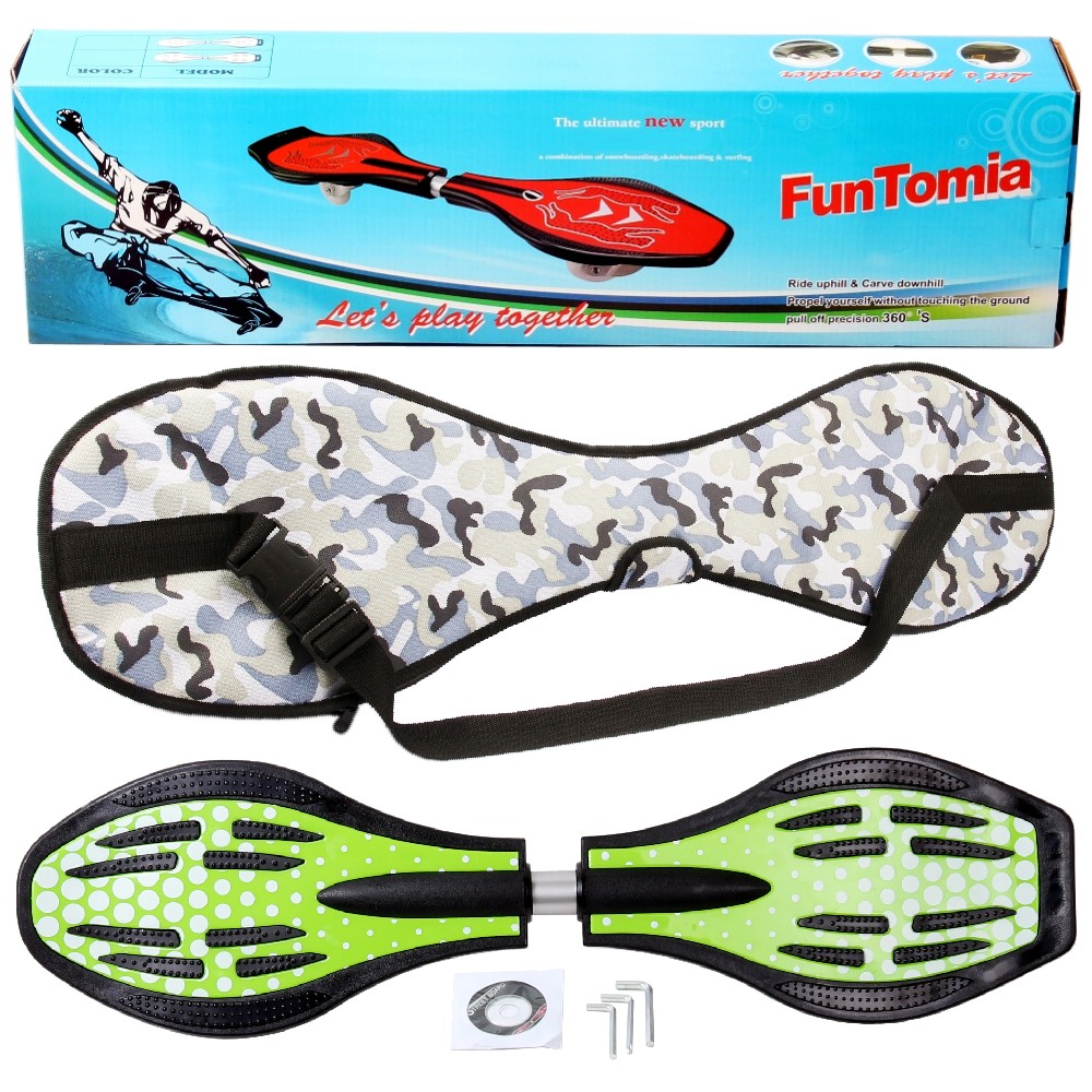 Das FunTomia Waveboard vereint die Dynamik von Skateboard, Snowboard und Surfen in einem robusten, hochwertigen Sportgerät. Es ist ideal für Kinder ab 8 Jahren, Jugendliche und Erwachsene, die Wert auf Qualität, Stabilität und ein sicheres Fahrgefühl legen.